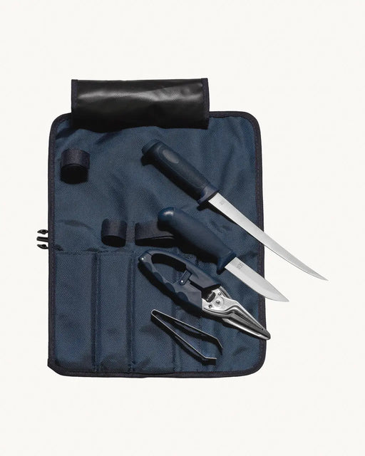 Fiskesettet inneholder fileteringskniv, tollekniv, fiskesaks og fiskebeinspinsett. Settet passer for alle som skal håndtere fisk enten det er i båt...