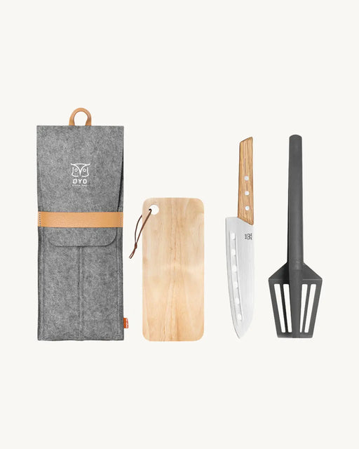 Matgleden er alltid større når man har riktig verktøy. Det gjelder også når man skal lage mat i naturen. Dette settet inneholder en japansk kokkekn...