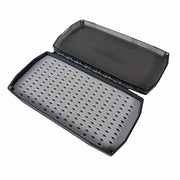 Klassisk flueboks med magnetisk lukking. Gjennomsiktig lokk gir rask oversikt over hvilke fluer som er i boksen.