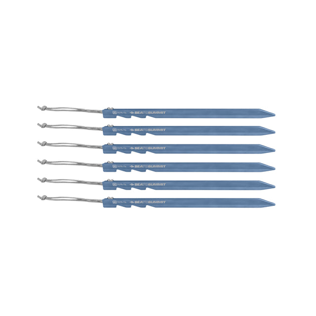 Sea to Summits Ground Control Light Tent Pegs er tilgjengelige separat og leveres med alle Alto- og Telos-telt, og er ultralette, men supersterk. Deres unike TriPoint-form har bred front for å maksimere grepet i varierende terreng mens den korte ryggraden øker stivheten. De unike flere hakkene gjør at ledningen kan festes nærmere bakken for mer sikker forankring. Disse ultralette teltpluggene er laget av førsteklasses 7075-T6 aluminiumslegering som er usedvanlig sterk og stiv - men hver pinne veier bare 7g!